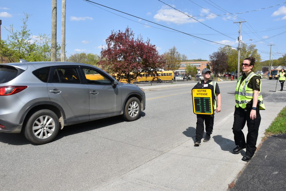 Cette activité de “cinémomètre vivant” est l’initiative de la Sûreté du Québec. “On veut sensibiliser les conducteurs à l’importance du respect de la limite de vitesse en zone scolaire”, soutient l’agente et coordonnatrice locale en police communautaire à la SQ, Stéphanie Lemay.