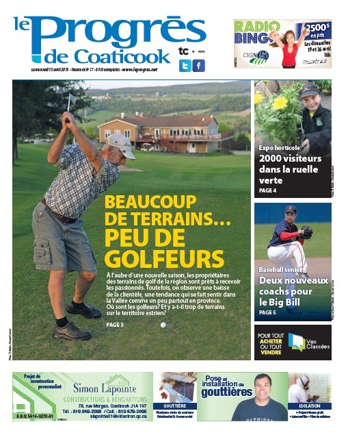 En exclusivité pour les lecteurs du www.leprogres.net, voici la Une du Progrès de Coaticook du 15 avril 2015… avant tout le monde.