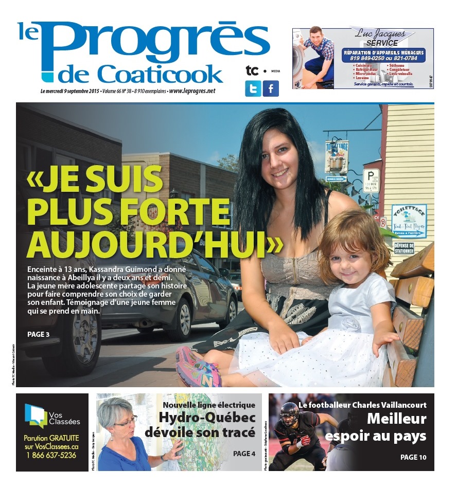 En exclusivité pour les lecteurs du www.leprogres.net, voici la Une du Progrès de Coaticook du 9 septembre 2015… avant tout le monde.