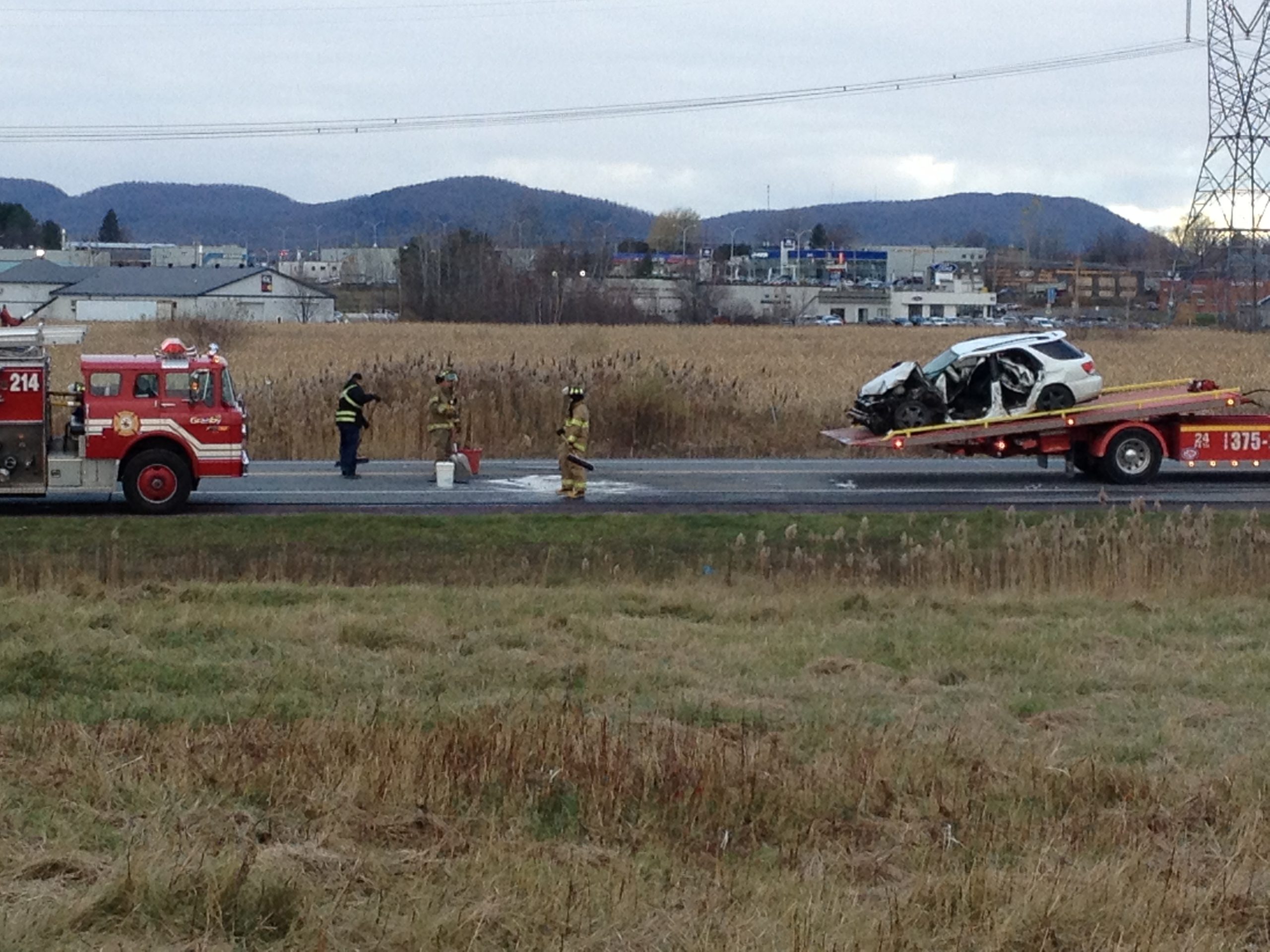 Le véhicule circulait sur le boulevard David-Bouchard lorsqu’il a percuté de plein fouet le poids lourd, au niveau des pneus, qui venait en sens inverse. La victime, un homme de 22 ans de Coaticook, est demeurée captive de longues minutes dans la carcasse de son véhicule. «Ça a pris environ 30 minutes avant de pouvoir l’extirper à l’aide des pinces de désincarcération», raconte l’agent Guy Rousseau, porte-parole du Service de police de Granby. Le jeune conducteur a subi des blessures aux jambes, mais on ne craindrait pas pour sa vie. Un reconstitutionniste de la Police de Granby s’est rendu sur les lieux afin d’établir la chronologie des événements et d’établir les causes. Les policiers n’écartent pas que la victime se soit endormie au volant. Le conducteur du poids lourd n’a pas été blessé. L’impact, qui s’est produit vers 6h30, a forcé la fermeture du boulevard David-Bouchard dans les deux directions entre la rue Principale et la rue Cowie. Le tronçon routier a été rouvert vers 8h30. La collision s’est produite dans une zone où la limite de vitesse permise s’élève à 90 km/h.